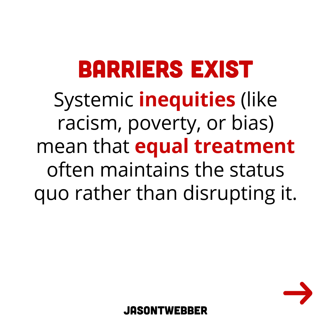 Equality isn’t always fair, and here’s why. Too often, we think treating everyone the same is enough. But if we ignore people’s unique barriers and needs, we risk leaving them behind.